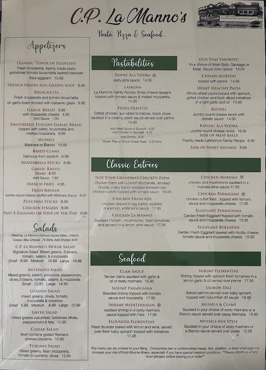 Customer reviews speak volumes about the experience at C.P. La Mannos. One diner, Scott Karpiel, praised the restaurant for both the exceptional food and the attentive service. Others have echoed similar sentiments, highlighting the friendly atmosphere and the live entertainment that elevates dining into a delightful outing. The sense of community and family warmth permeates every interaction, creating an environment where you're not just another customer but a welcome guest.